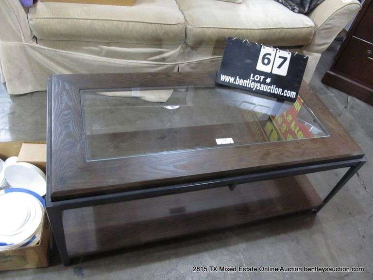 LOT 67 - WOOD/METAL/GLASS COFFEE TABLE