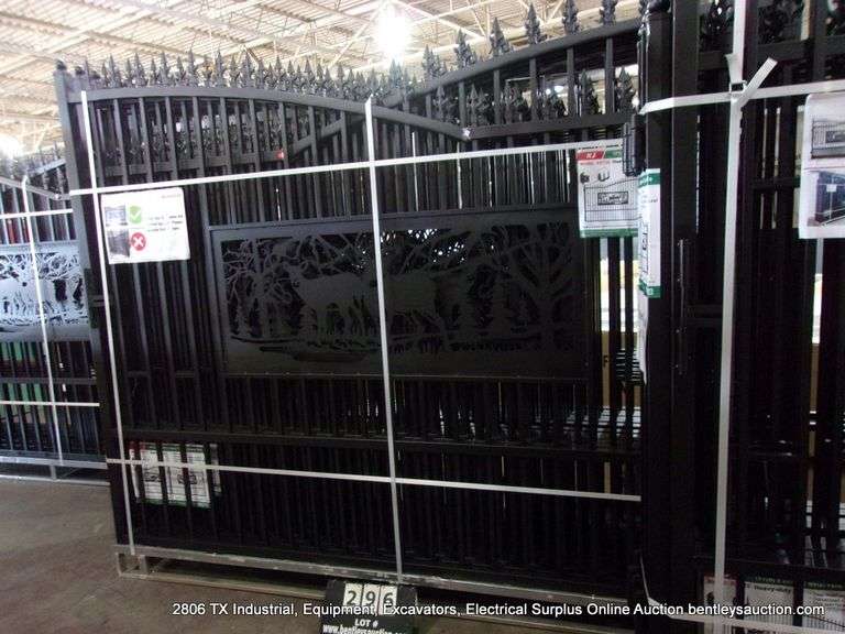 LOT 296 - KJ ALL METAL K0720 HEAVY DUTY BLACK POWDER COATED METAL FARM DECORATIVE GATE- DEER MOTIF, 7' X 20'